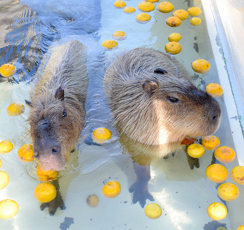 ユズの香りを楽しみ 埼玉・狭山のこども動物園でどうぶつ温泉、カピバラもうっとりユズ湯に サル山でも