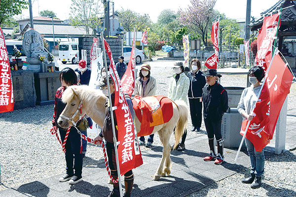 白馬が参拝者をお迎え 足を故障、引退の乗用馬がデビュー 埼玉・東松山の上岡観音、第二の活躍の場に