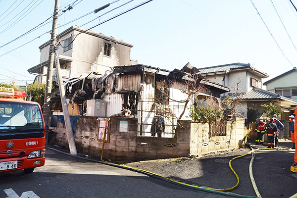 就寝中に出火、木造2階建て住宅が全焼 2人暮らしの住民夫妻、外に逃げて無事/鶴ケ島