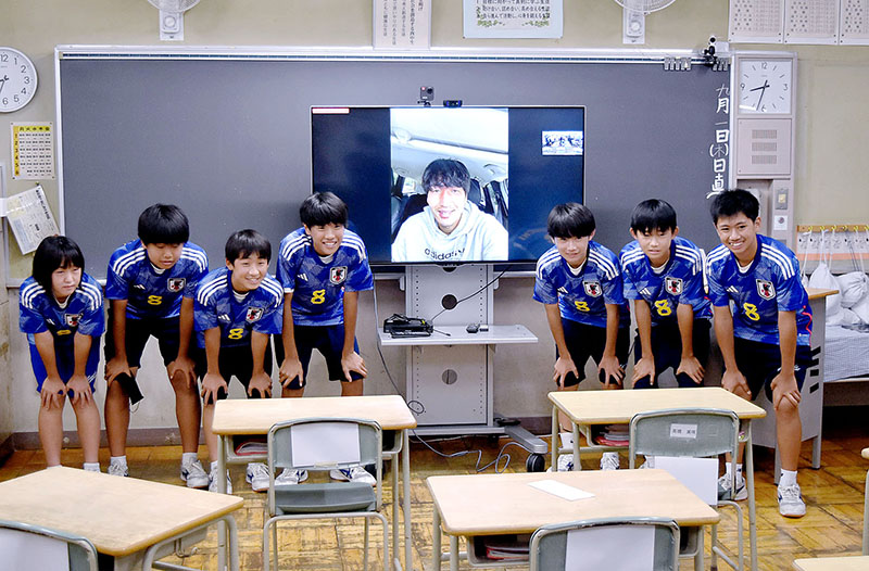 「憧れの人」からサプライズ マネジャーのはずが…原口選手が登場 行田西中「職業調べ」の手紙縁で