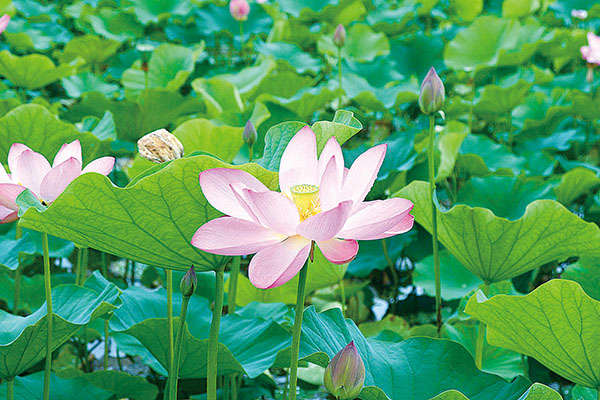 古代蓮、埼玉・行田で見頃に 早朝からゆっくり開くピンク色の大輪、訪れた人々楽しませる 8月上旬まで