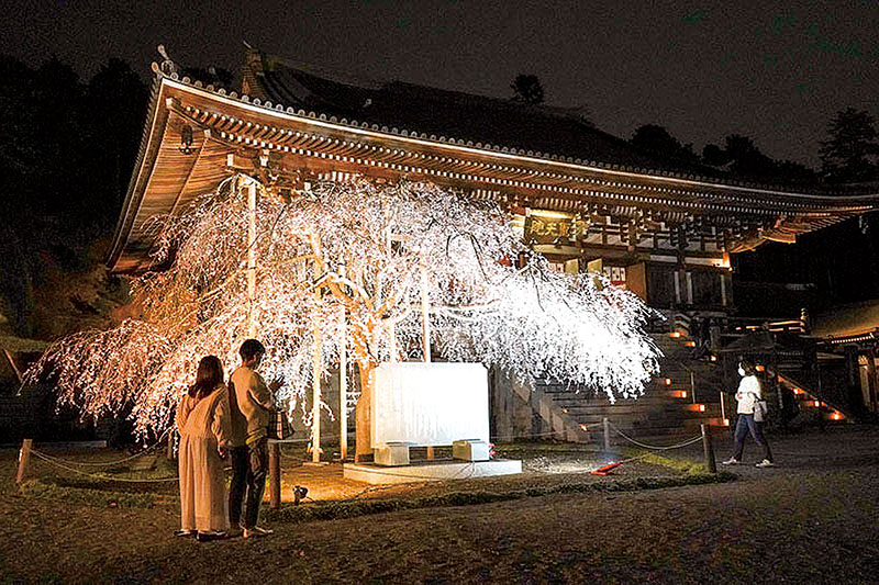 幻想的な「夜桜詣(もうで)」、埼玉・日高の聖天院で開催 国の特別記念物・三春滝桜などライトアップ