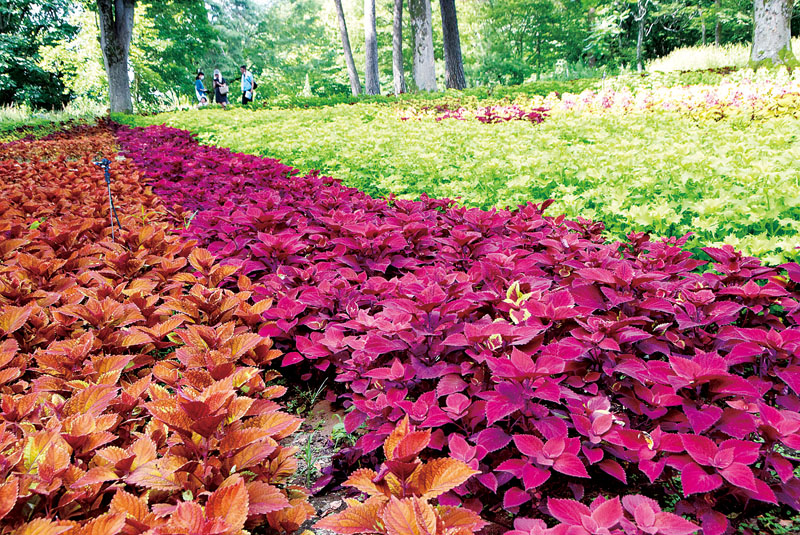 木立の中で鮮やかに…滑川・森林公園でコリウスが見頃 7品種1万3千株 11月初旬まで長く楽しめそう