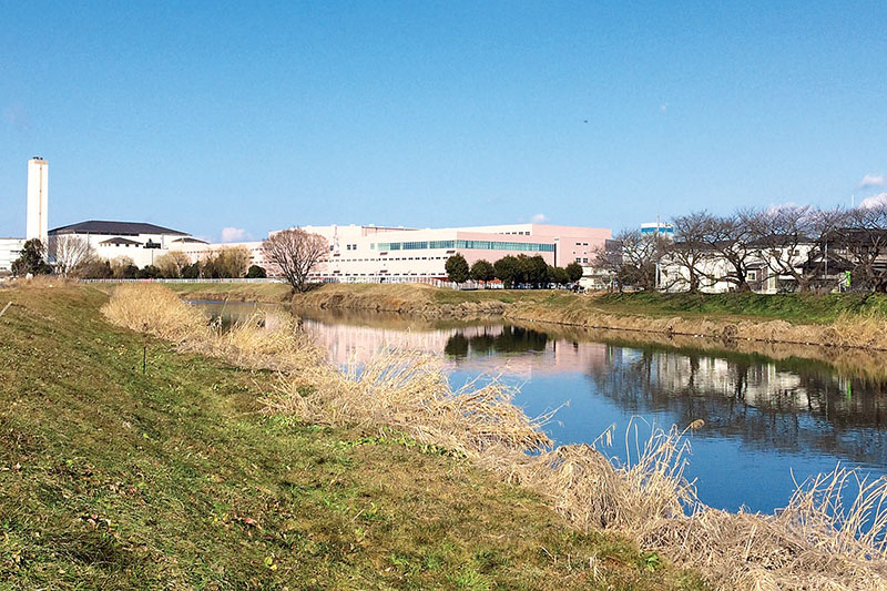 花見スポット、埼玉の白岡さくらロード 見晴らし良くのどかな川沿いの道 桜の木、穏やかな元荒川に沿う