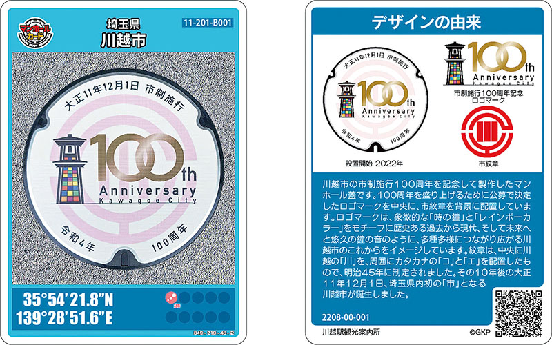 レインボーカラーの時の鐘デザイン 川越市制100周年記念のマンホールふた カード製作、配布を開始