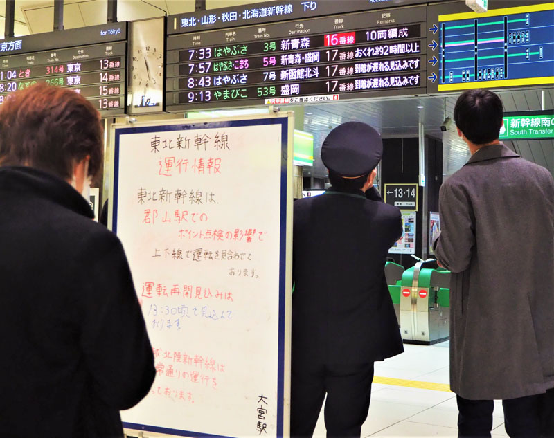東北新幹線の運転見合わせ…上越や北陸も運休や遅れ 大宮駅でも乗客らに戸惑い、頭抱えしゃがむ姿も
