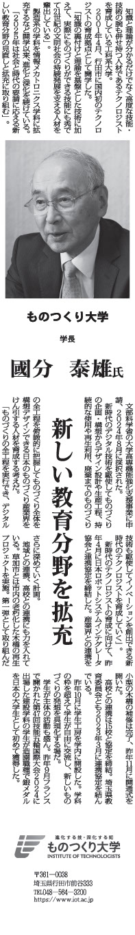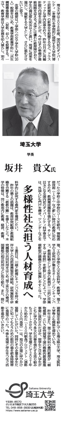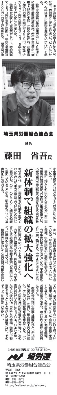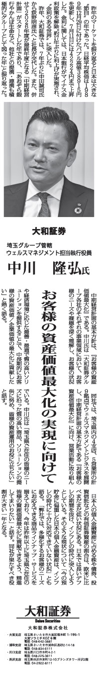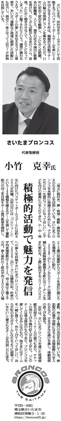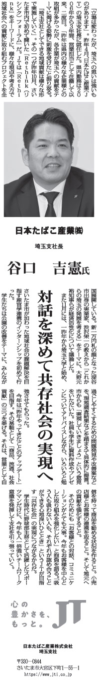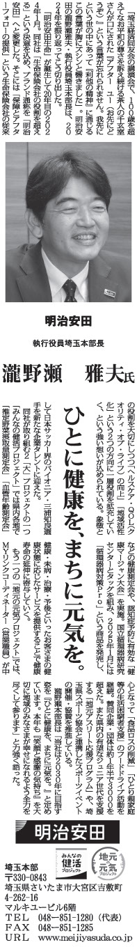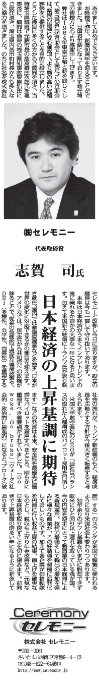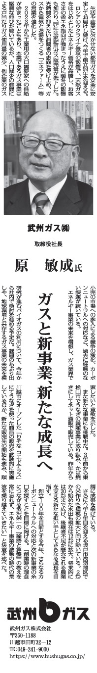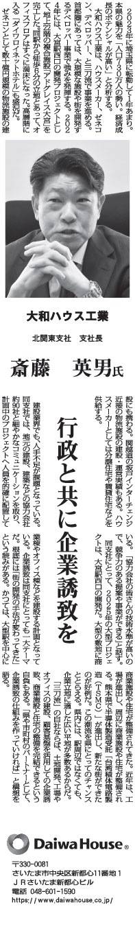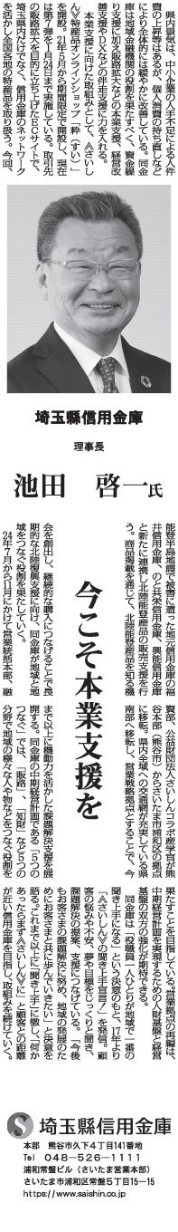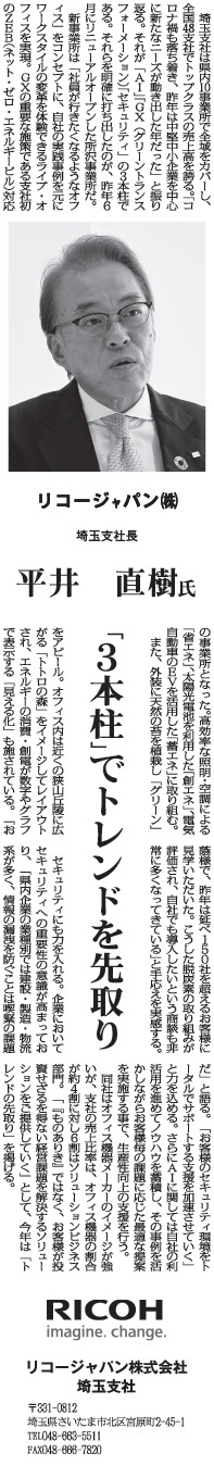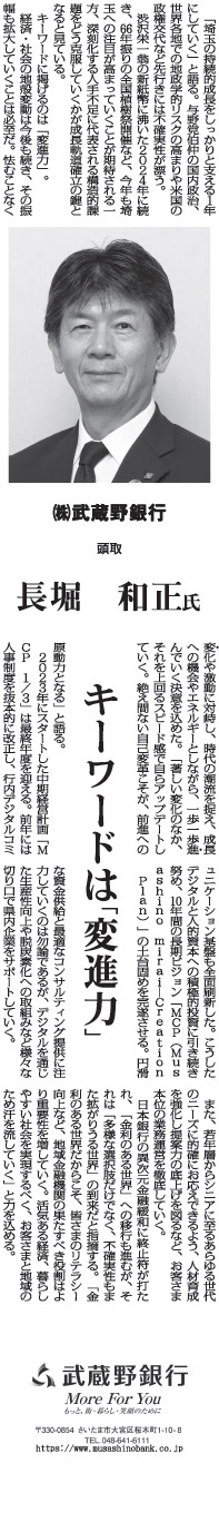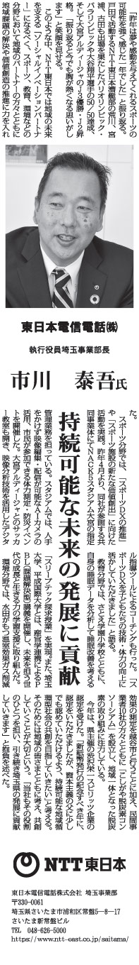 持続可能な社会の実現に向けて、世界情勢や国内経済がスピード感を増して変化する昨今、埼玉の2025年が幕を開けた。地域の未来を切り開く県内各界のトップは何を考え、新年にどのような展望を見据えているのか。137人に今年の期待や抱負を語ってもらった。