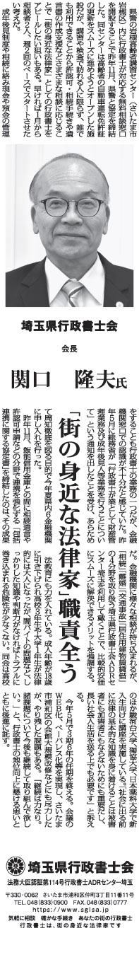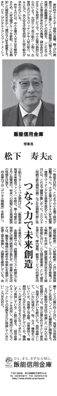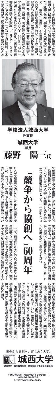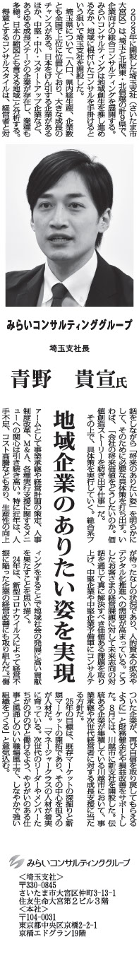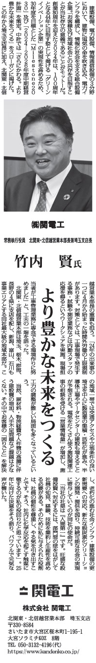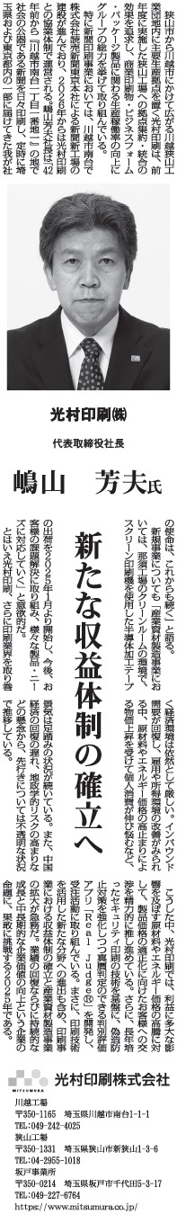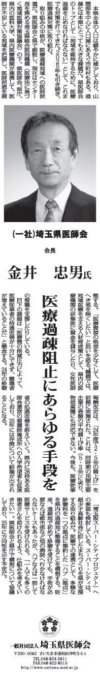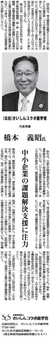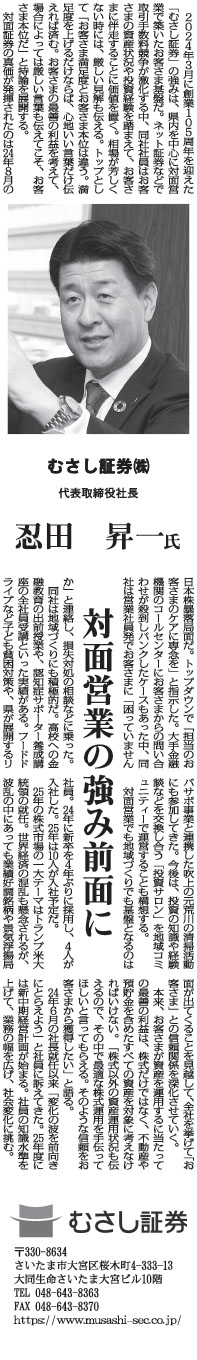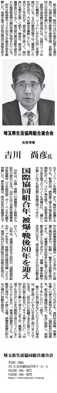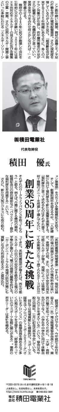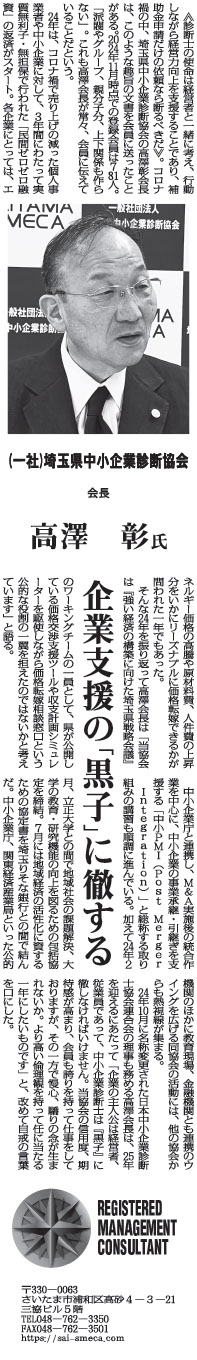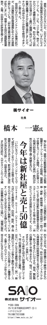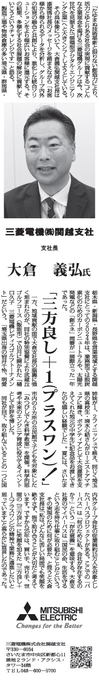 持続可能な社会の実現に向けて、世界情勢や国内経済がスピード感を増して変化する昨今、埼玉の2025年が幕を開けた。地域の未来を切り開く県内各界のトップは何を考え、新年にどのような展望を見据えているのか。137人に今年の期待や抱負を語ってもらった。