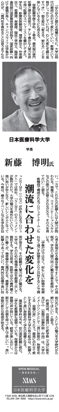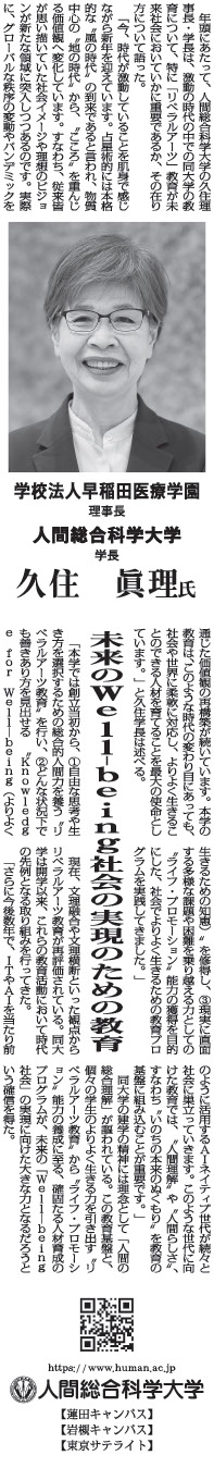 早稲田医療学園 理事長/人間総合科学大学 学長