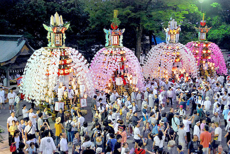 秩父市番場町の秩父神社と夏祭り対策協議会は、19、20日に市中心部で開催予定の「秩父川瀬祭」の内容を発表した。3年ぶりに、市内八町会全ての笠鉾(かさぼこ)・屋台の曳(ひ)き回しが両日行われる予定。会場となる市街地の道路は交通規制を実施し、露店も並ぶ。
