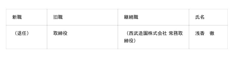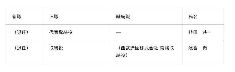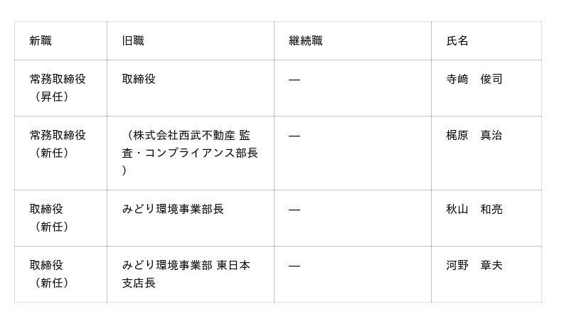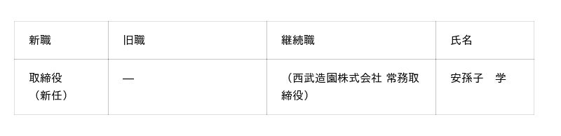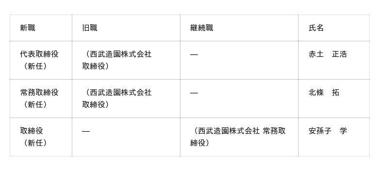 また、子会社の西武緑化管理株式会社、横浜緑地株式会社、西武アグリ株式会社の役員の異動についても、お知らせいたします。
