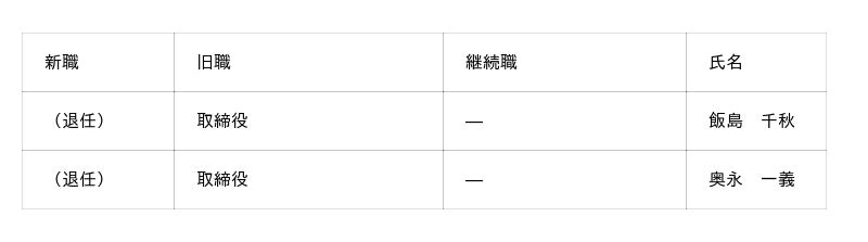 なお、役員の異動については、株主総会等の承認及び取締役会等の決議をもって正式決定する予定です。