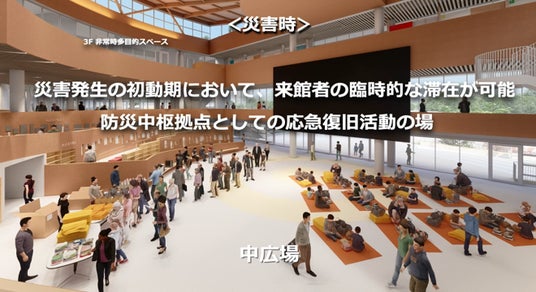 災害発生時の初動期において臨時的な滞在が可能となり、その後は応急復旧活動の場として機能する中広場を整備します。