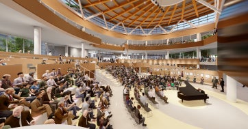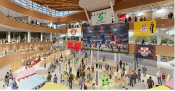 中広場は天候に左右されず一年中快適に過ごすことができ、大型ビジョンや移動観覧席の設置により、市民が一体となって楽しめる多様な催しを開催できる空間を形成します。