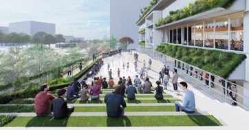 さいたま新都心駅から歩行者デッキを延伸整備し、さいたま新都心全体の回遊性を向上させるとともに、バリアフリーにも配慮し、駅から階段や段差等がなく訪れることができる計画としています。