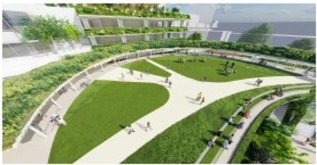 立体的に緑化空間を整備し周辺の公園とつながる緑のネットワークを形成します。
