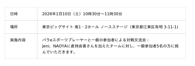 2026/1/10(土)開催:東京eスポーツフェスタ2026「障害の有無を超えたeスポーツの可能性 パラeスポーツプレーヤーとのエキシビションマッチ」挑戦者募集のお知らせ