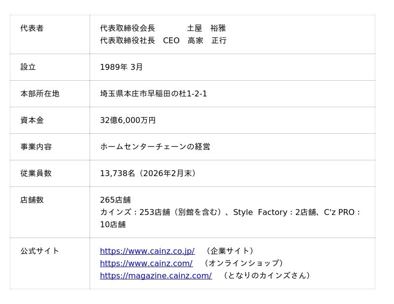 <株式会社カインズ 概要>