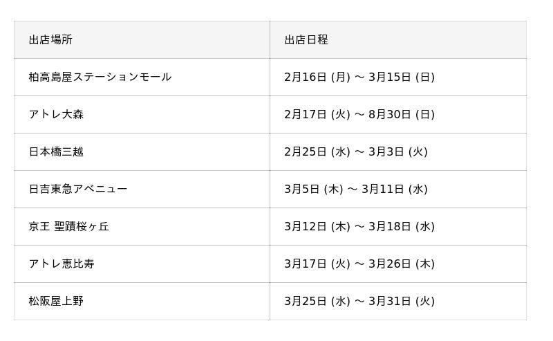 ※営業日程・時間は催事場によって異なります。各施設のホームページ等をご確認ください。