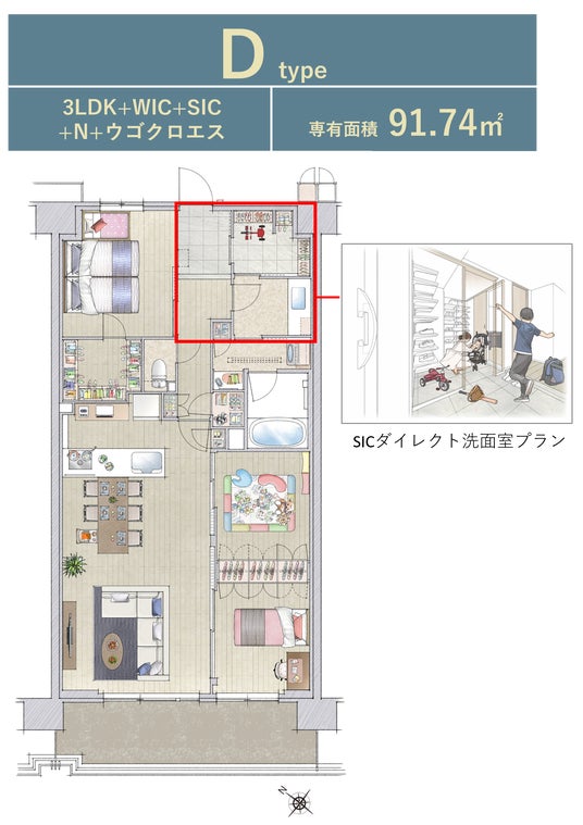※WIC=ウォークインクロゼット、SIC=シューズインクロゼット、N=納戸、FC=ファミリークロゼット