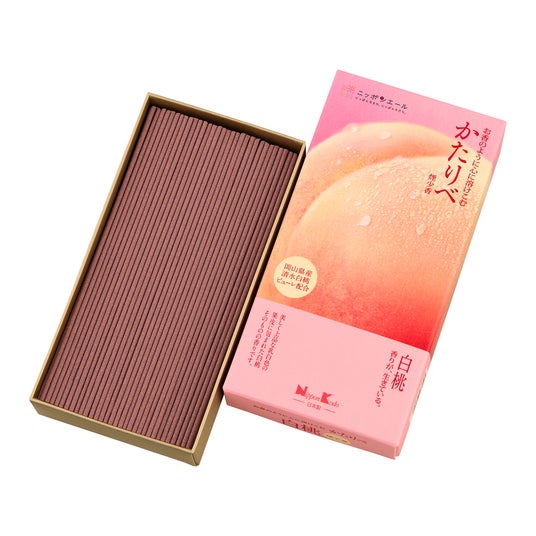 3/5、日本香堂の「かたりべ」シリーズから「シャインマスカット」と「白桃」が新発売!国産りんごの搾汁残さをアップサイクルした「りんごパミスぐるりこ」を使用