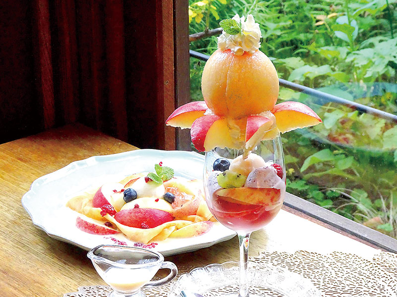 夏に推す一品…モモが一つ丸ごと鎮座「桃の王様パフェ」 鶴ケ島・グリーンフィンガーカフェ 「王様」と「お姫様」を名に、季節の果物のスイーツを提供