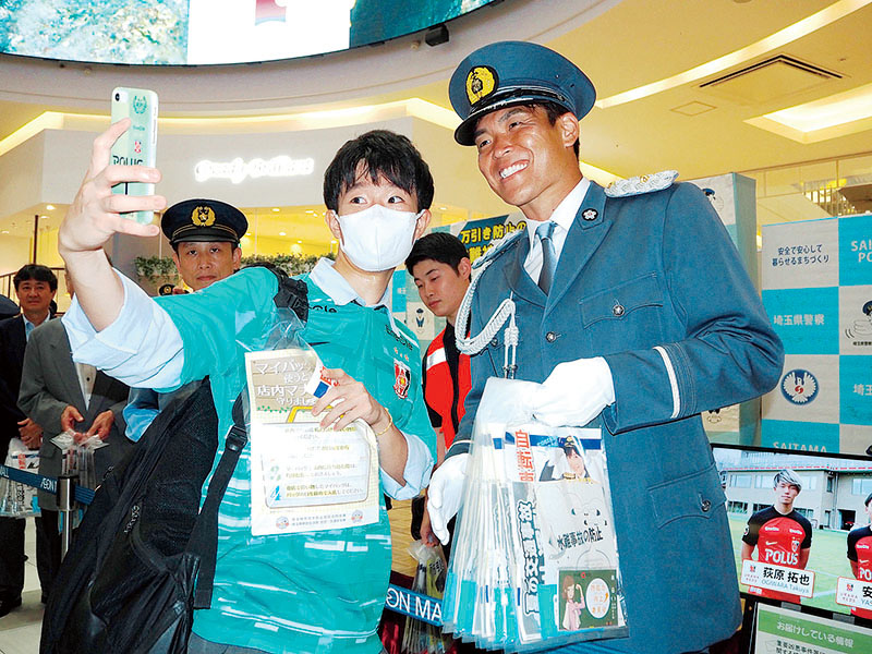 J1浦和とJ3大宮の新レリーフ それぞれホーム最終戦日に公開 MF伊藤敦樹選手の足型は伊勢丹浦和店前 GK笠原昂史選手の手型は大宮高島屋前に