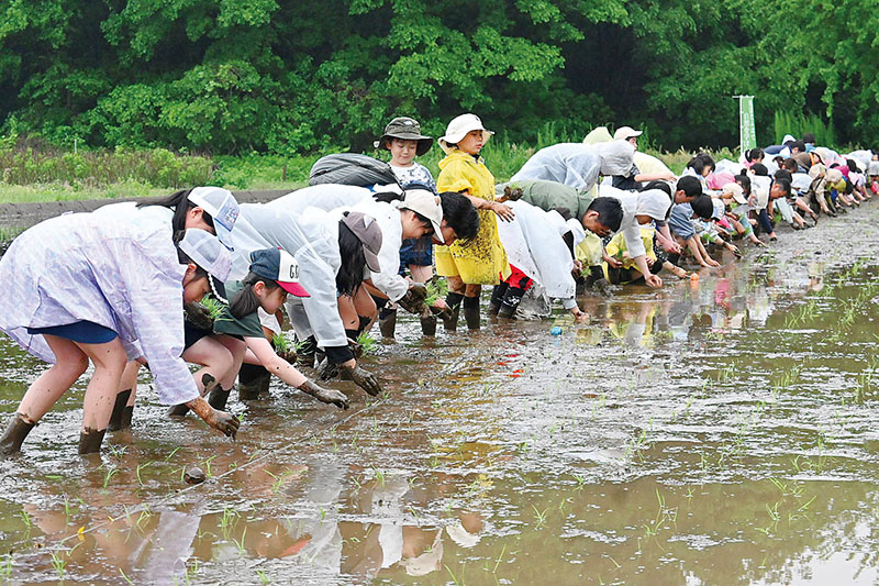 県内初…地元で生産の有機栽培米、幸手市内の全小中学校で給食に 交流会で生産者と一緒に食べる つやつやのご飯に児童ら大喜び 「もちもちして甘い」「たくさん食べたい」とおかわりも