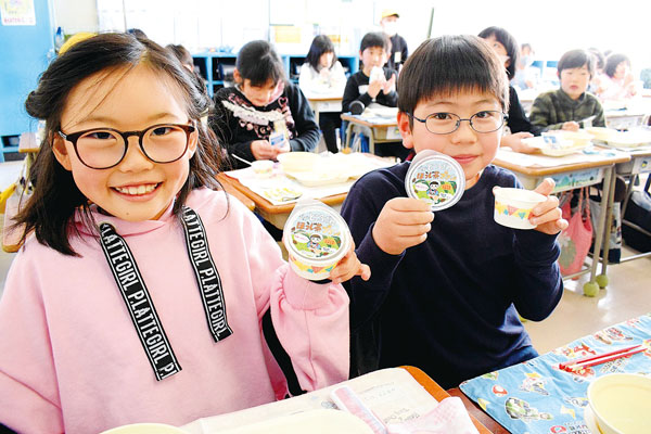 「チョコみたい」ほうじ茶プリンに児童ら笑顔 所沢の茶生産者ら共同開発、小中学校の給食で提供