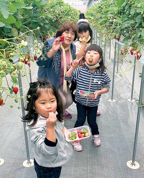 イチゴ狩りに児童ら招待、羽生の観光農園 2千平方の広さ、全員マスク徹底「久しぶりで大喜び」