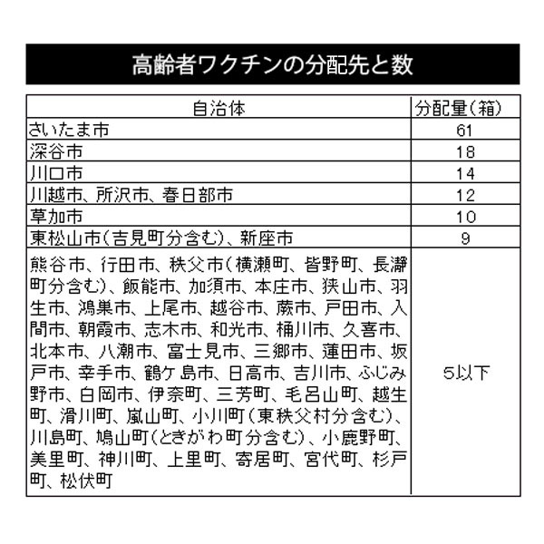 <新型コロナ>埼玉のワクチン分配量が判明、最多はさいたま 次に深谷、川口と続く 納得できず困惑も