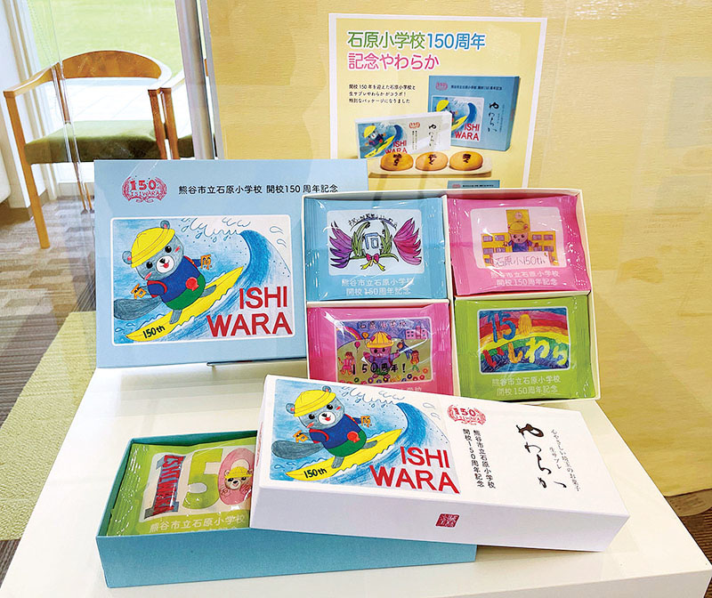 梅林堂、好評で完売!150周年の石原小とのコラボ商品 児童ら選んだ150周年マークも「やわらか」に
