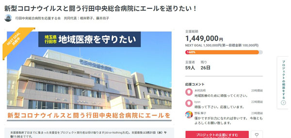 <新型コロナ>ウイルスと闘う病院を応援 介護事業者ら、CFで支援金呼び掛け「共に地域を守るため」