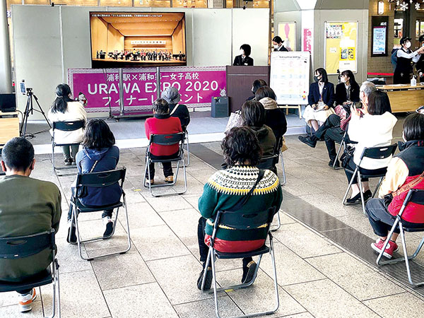 <新型コロナ>JR浦和駅で文化祭 展示会中止の浦和一女高と連携 駅利用客ら拍手「元気もらった」