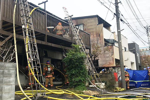 深夜2時…会社の建物2棟を全焼、通行人が煙に気付く 会社は年中無休で前日も業務、新座署が原因を捜査
