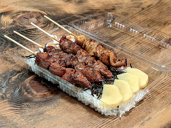 <お持ち帰りグルメ>大宮南銀で50年 もつ焼大阪屋、屋台風もつ焼き弁当 秘伝のたれは煎餅店ベース