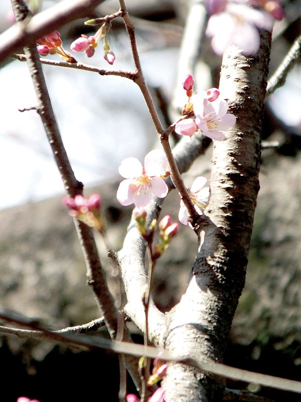 早咲きのソメイヨシノ?1本だけ開花 行田の水城公園にひと足早く咲く桜、10輪余り開く