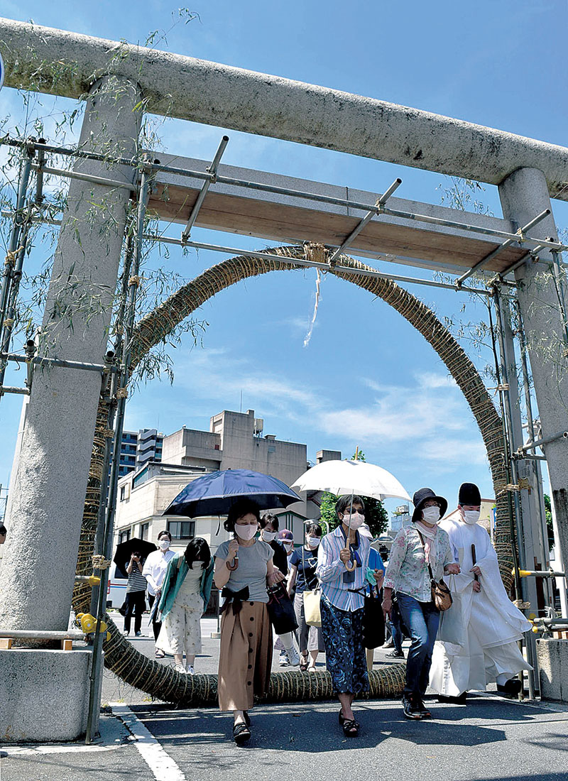 大勢の客!国道17号沿いに4メートル「茅の輪」登場、熊谷の高城神社 残り半年も健康に 露店並び盛況