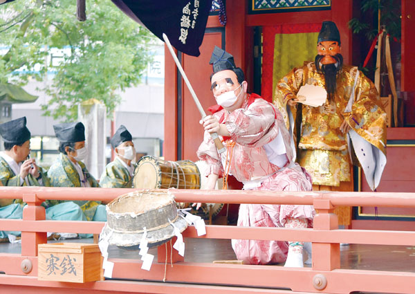 秩父夜祭の前夜祭「宵宮」行われる 秩父神社神楽殿で神楽奉納、お面にマスク装着 見物客楽しむ