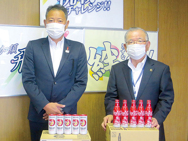 <新型コロナ>コーラ3000本、医療従事者に無償提供 コカ・コーラが加須市に届け、市長「水分補給を」