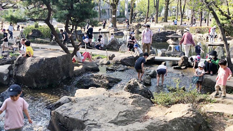 最高気温を更新、さいたまで夏日に 半袖の人も行き交う大宮駅 耐えかねた子どもら浦和北公園の水辺で遊ぶ