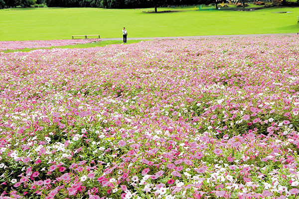 ネモフィラ10万本、丘を水色に染める 例年より2週間早く開花、滑川の森林公園で見頃