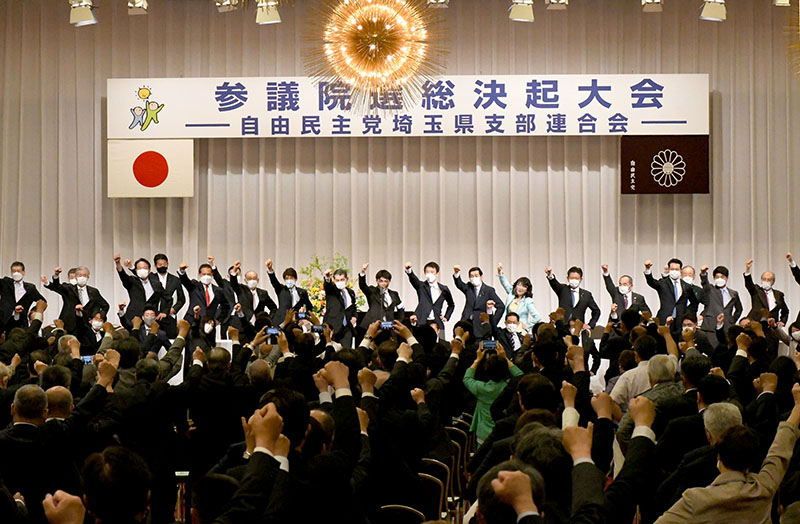 <参院選>岸田首相もメッセージ 自民党県連が総決起大会 得票目標数は「100万票」、本番へ意識高める