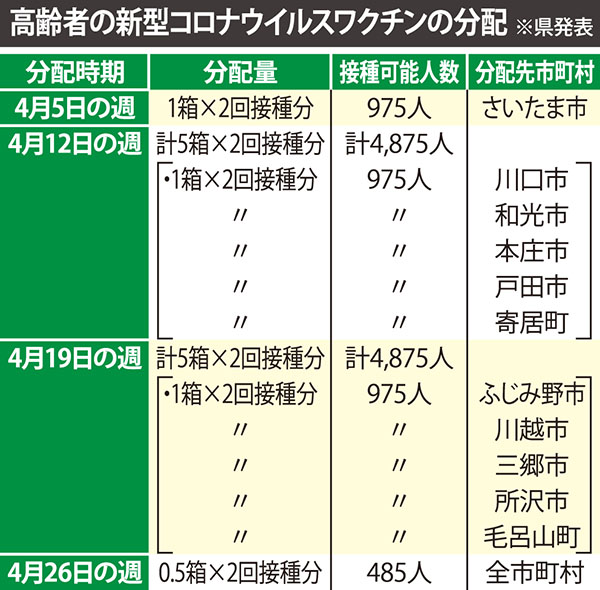 <新型コロナ>高齢者のワクチン、さいたま市分から順次分配 新規感染者が再増加の兆候、知事が危機感