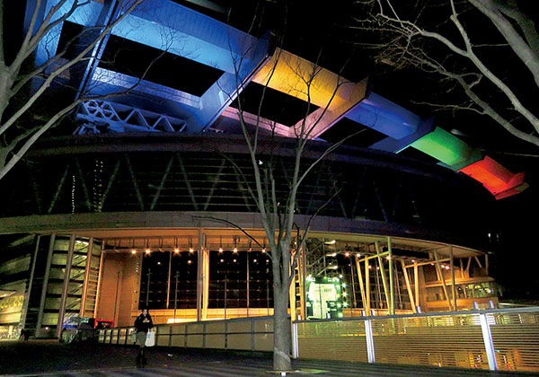 五輪イヤーの幕開け祝うライトアップ さいたまSアリーナ、五輪カラーの5色に輝く 31日まで