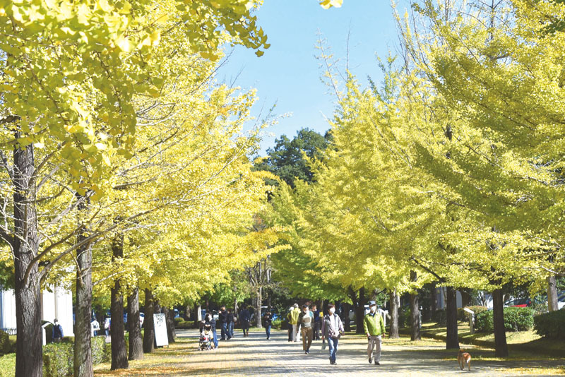 黄色いトンネル、秩父ミューズパークで客楽しませる 3キロの道に500本のイチョウ、11月初旬まで見頃