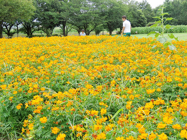 まさにビュースポット!キバナコスモス満開、大宮第三公園で 太陽のようなオレンジ、8月いっぱい楽しめる