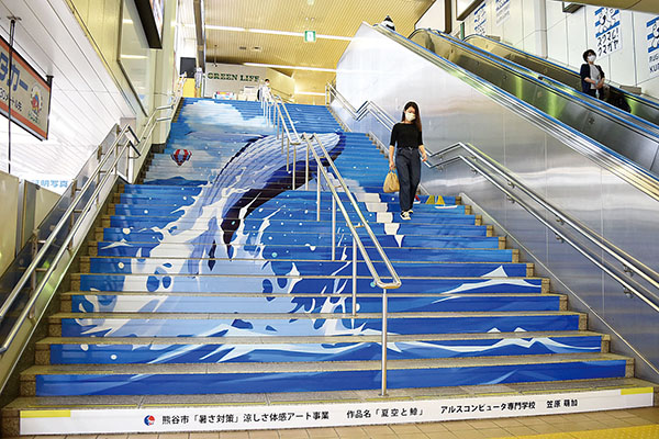 日本一暑いまちで涼感を演出 夏恒例の「階段アート」、埼玉の熊谷駅と籠原駅にお目見え 9月30日まで