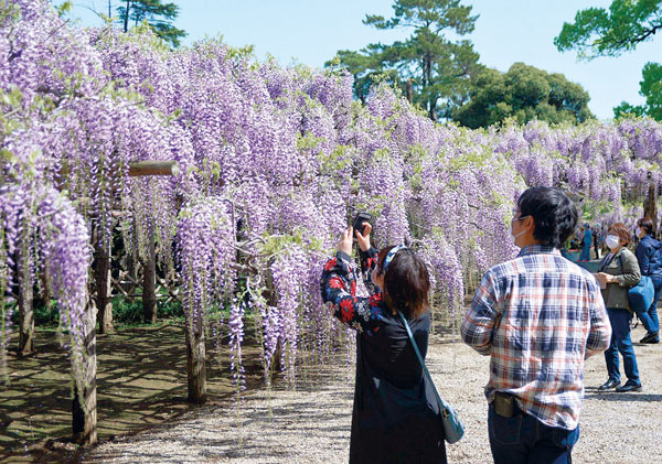 薄紫の花房、ひときわ優美に 埼玉・加須の玉敷公園、樹齢450年以上の大藤が見頃 周囲には甘い香りも